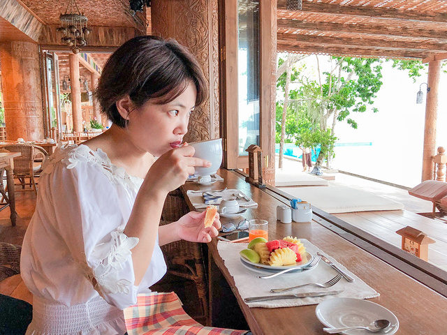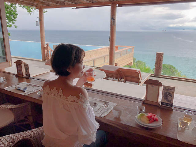 酒店有好几个餐厅,其中一个就在我们住的楼边上,早上是早餐厅,其他时间会有不同的主题。每天面朝大海吃早餐的感觉太棒了,松饼配咖啡,除此之外,在泰国都必吃的新鲜水果,连我不爱的木瓜都爱上了。无边泳池在早餐厅边上,人不多,如果想要拍个无人的泳池,可以起的早一些。