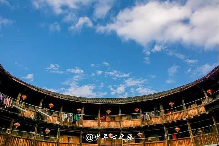 土楼是世界独一无二的大型民居形式,被称为汉民族传统民居的瑰宝。也只有这优美的弧形天际线,才能装下万丈高空的蓝天白云。