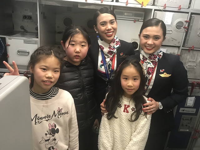 闺女一会就把这些不愉快的经历抛在脑后了,和空姐一顿神聊啊,那个英语飙的,我一句也听不懂
