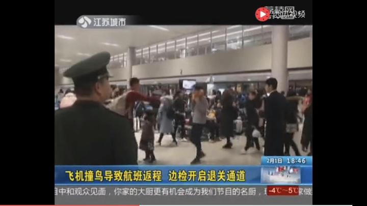 大约飞机飞行了1小时左右,出现撞鸟事件
