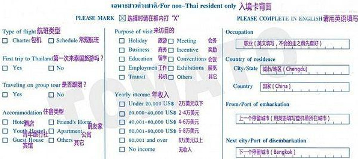 入境卡反面