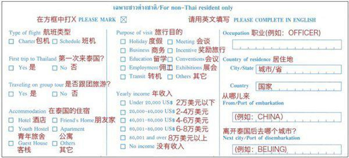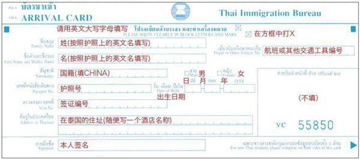 飞机快到的时候,需要填写入境卡,所有人都要写,空姐会给大家发卡,填写格式如下: