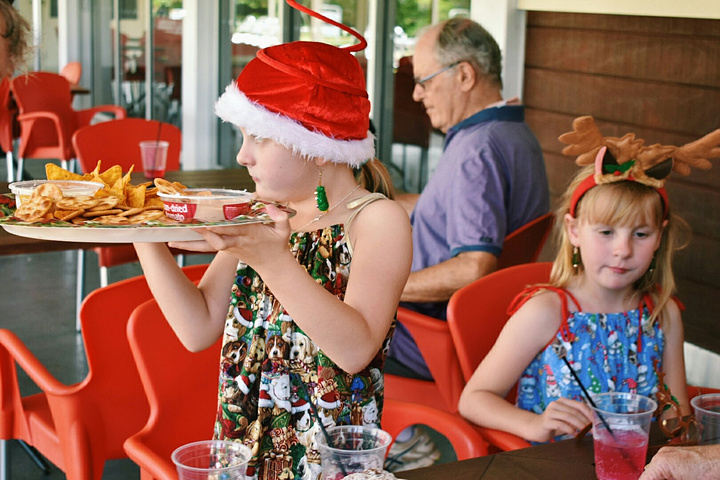 ▼ 投球结束后,小朋友们开始迫不及待的吃圣诞餐。