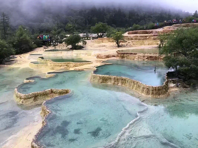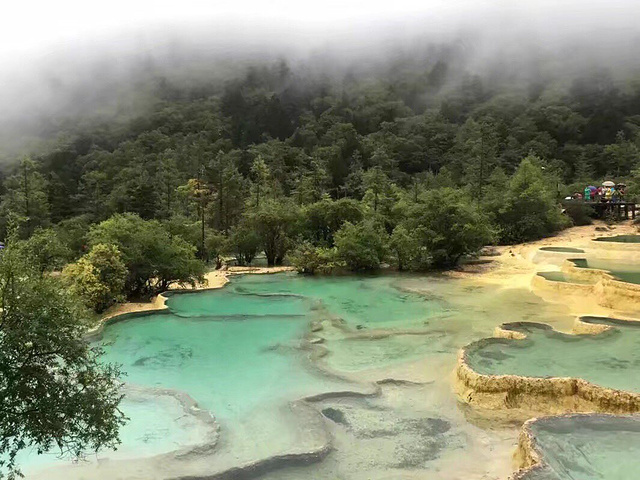 到黄龙的时候,下起了淅沥沥的雨,气温越来越低,幸好在重庆逛街买了件毛衣,还有我妈的冲锋衣😂很是保暖。因黄龙需要爬山,海拔很高,有两种游玩方式,徒步与乘坐索道两种方式,因为🌧️ 爬山➕高反,所以选择乘坐索道上山去看“五彩池”选择徒步下山,徒步才能一览所有美景,尽收眼底!一路美景,雨中欣赏大自然的鬼斧神工,有点小浪漫,近十个小时的车程,非常值得!