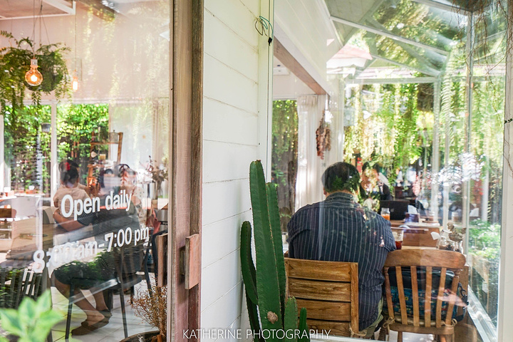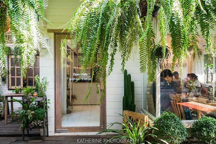 从大象学校出来,我跟小伙伴们直奔清迈的特色网红店去了,曾经火爆INS和微博的网红店大多聚集在清迈宁曼路,我跟小伙伴跟着导航来到JJ Market的The Baristro咖啡店,JJ market就是一个小型的购物商场,有许多本地服装品牌进驻,下车绕了一圈问了下当地人,才找到这个门口充满绿色多肉的咖啡店。