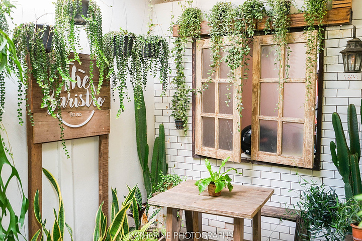 店面不大,但却别有洞天,特别喜欢门外这一片小花园的布置,仅仅一张桌椅,一堵绿墙,就能让人赏心悦目心旷神怡,都说人过生活要有诗和远方,我看这小小咖啡店就已经涵盖了绿色环保的理念,更有田园山色的诗意,妙哉妙哉。