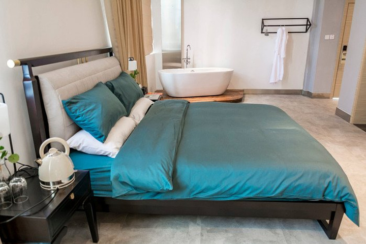 房间是白天拍的,所以看着更漂亮一点,晚上手机像素不够没法拍清楚。酒店的房间面积是很良心的,打开房门的第一眼真心是会被惊艳到。五六十平米的室内面积比很多公寓酒店还要大上一些,加上简约的装修风格使视觉效果更佳
