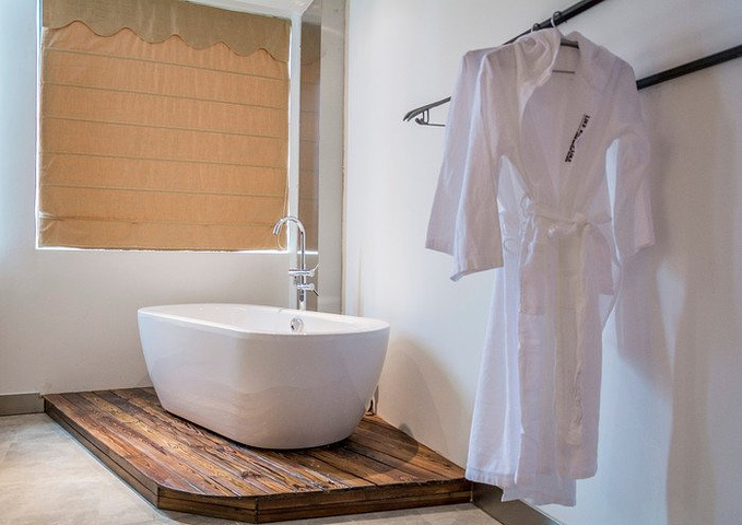 浴缸背后是一个观景玻璃,放上一缸温水,泡上一杯绿菜,听音乐高低起落,赏窗外风花雪月,奢华与情怀,都在这一刻感受~