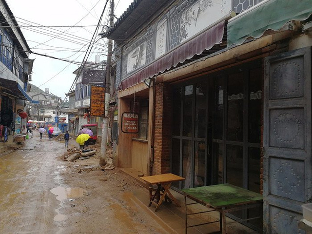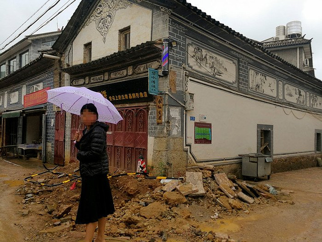 双廊距离大理古城五十公里左右,走到这里环海路也就走了一小半。在几年前,双廊以背负青山,面迎洱海,紧连鸡足,远眺苍山而闻名海内外,号称整个洱海的最佳观景点;想必大家在网上也看到了各种双廊的美照,包括电影《心花路放》里面也特别的花很多镜头讲到了这里。可事实上呢?这几年双廊改建,整个镇都成了一个大工地,穿过双廊镇这点路真的是整个环海过程中开得最累的一节。我这个小电瓶车动力本来就不足,底盘又低,穿过镇上街道的时候泥坑一个接一个,每一个都能把轮子完全陷进去,好几次都感觉车要翻了;但进到镇上的时候已经从岔路口走了很远,退回去太费时间,也怕电量不足~