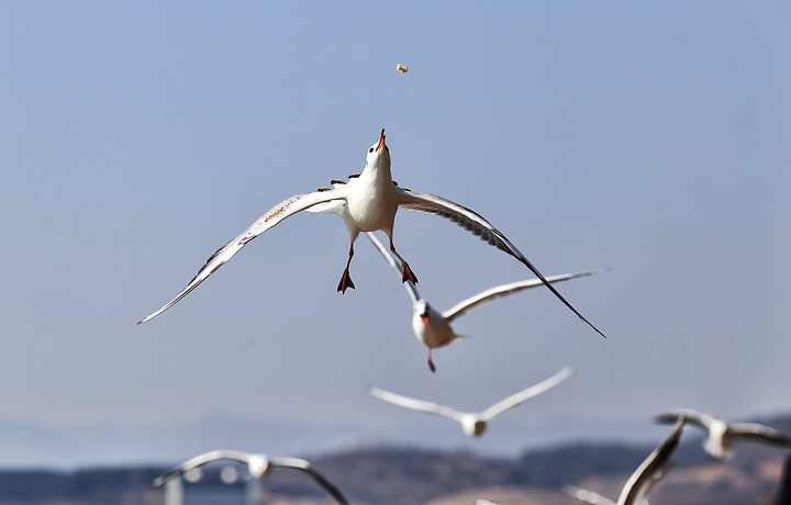 昆明滇池是海鸥的栖息地,但是抚仙湖更是海鸥的世外桃源。这次带队去西双版纳,途中经过抚仙湖,让我和同行游客拍得不亦乐乎。