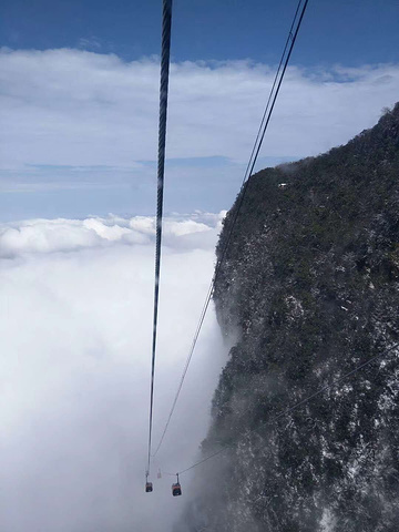 天门山国家森林公园天门山索道:耗资2.6亿打造的亚洲最长的高山客运索道,全长7455米。整条索道以张家界市中心的城市花园为起点,直达天门山顶的原始空中花园,犹如一道彩虹飞渡人间天上,又似一条巨龙腾翔素云苍穹,依山籍壁,恢宏壮观。索道沿途经过现代城市风光,秀美田园风光以及雄奇高山风光,堪称世界第一空中移动观景长廊。