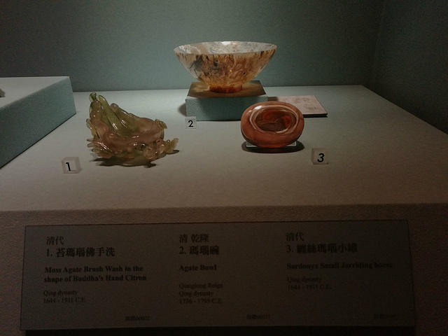 台北故宫博物馆的展览品都是小小的,应该是那些宫里把玩的小东西,但是我们看着就蛮喜欢,因为小小个而且都很精致。里面有很多个展馆主题,我们没逛全就被带走了。
