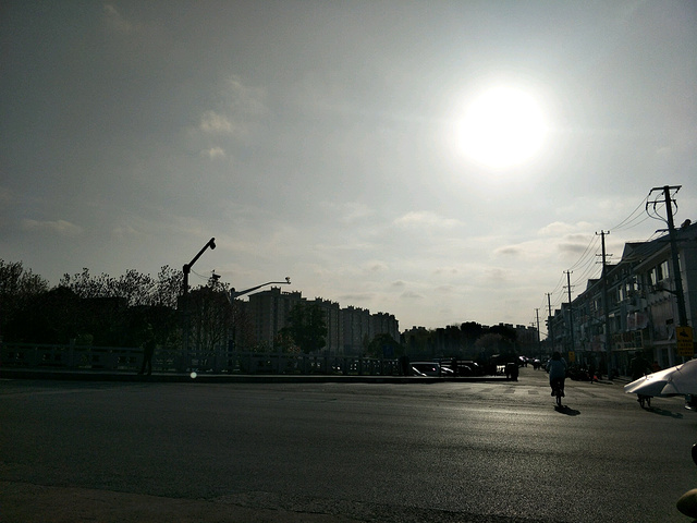 也没有到晚上,不过对着阳光拍摄,就是会有种黑夜的感觉