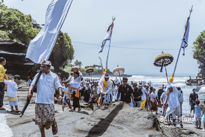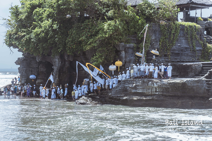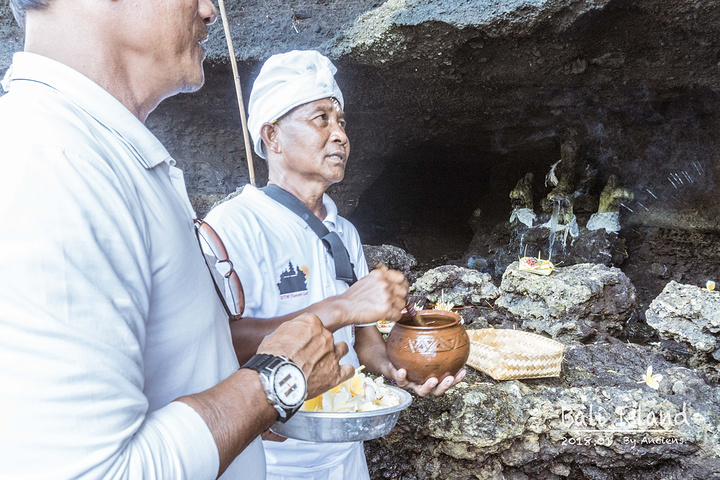 海神庙有一处奇观,因寺庙周围浪潮较大,被大海包围的海神庙常年受到海水的洗刷,海水沿着岩壁一层层地渗透下来,竟然变成了淡水!当地人将这些淡水称为“圣水”,在海神庙脚下的洞穴里,会有圣僧用“圣水”沾着稻米为每一位参与祭祀的人祈福。