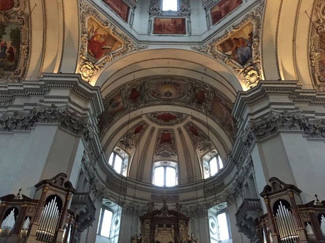 教堂内有堪称欧洲第一的管风琴,共用了6000多个管子,因为莫扎特曾在这里担任大教堂管风琴师,所以现以他的名字命名(by 穆穆vintage)
