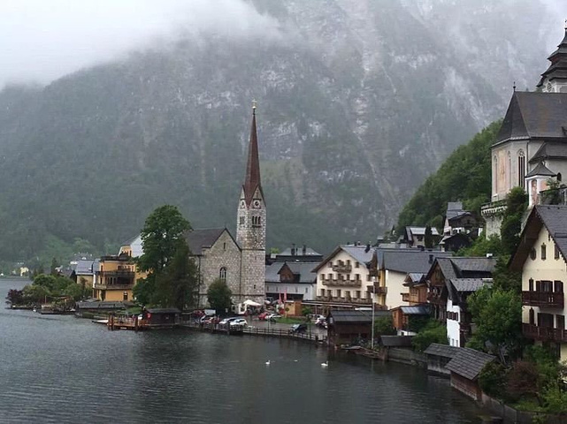 最美小镇--哈尔施塔特,来时正是雨天,在雨雾是不是别有风情