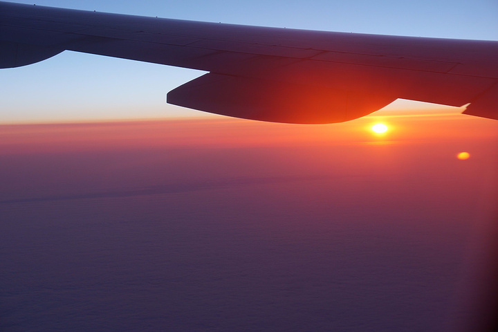 每次飞北美,路过北极都是在黑夜,什么也看不清,只能感受无尽的寒冷。这次有幸一睹北极的日出也是在空中的一大幸事