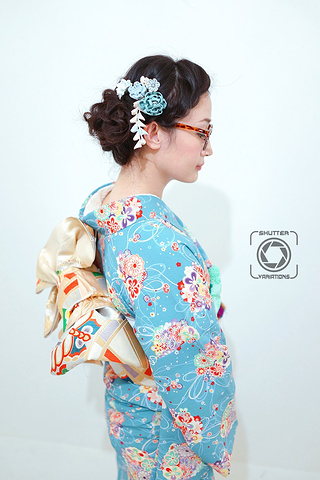 完成后店家会给拍定妆照。从拍照角度还可以从侧后面看到绿色带扬包裹带枕的样子
