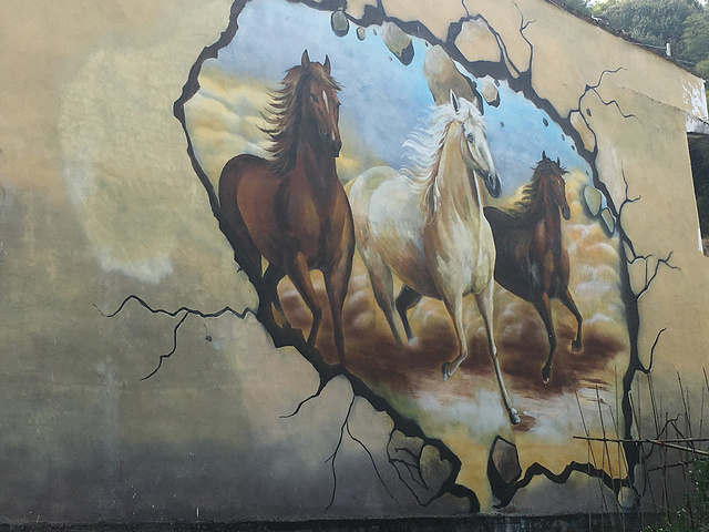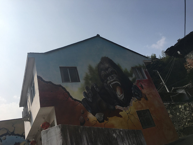 童话村的位置在乐清市石帆街道万东坑村,村名的房子都弄成了3D喷绘。