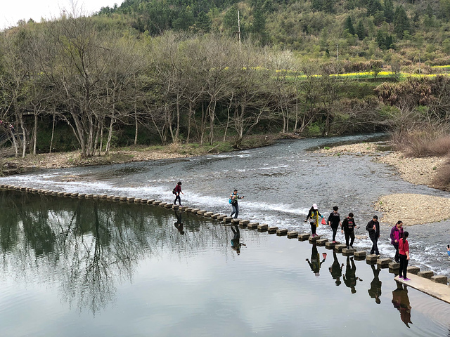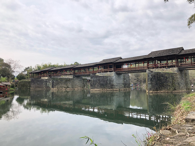 彩虹桥是一座廊桥,也是婺源的标志之一,很有特色,值得一看。另外桥下的石墩路也很有意思,嵌在水中,可以走过去体验一下。
