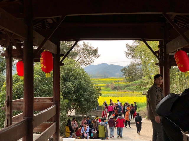 穿过廊桥能看到一大片油菜花田,只是只能远观禁止入内。