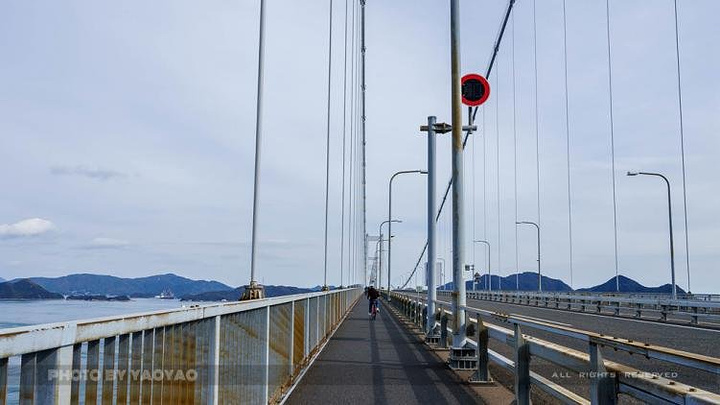 从桥上俯瞰美丽的濑户内海,在阳光的照辉下海水清澈见底,非常美丽。