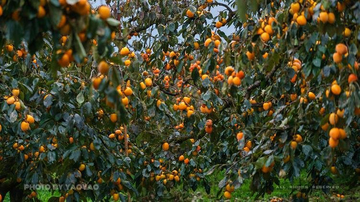 其实来到高山农庄,最开始映入我眼帘的却是这些压弯了树枝的柿子,只见上面结满了金红的果子,远远望去,非常诱人。