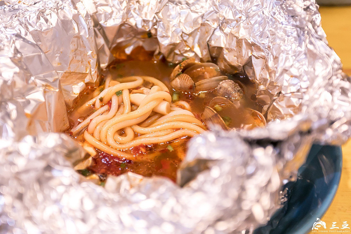 抱罗粉是三种粉里宽度最粗的,所以琼北这里叫它为“粗粉汤”,它是文昌县抱罗镇所产而取名的,虽然它看起来和面条没什么区别。为了保温,抱罗粉是盛放在锡箔纸里,粉质软而韧,吃进去比较有嚼劲。赞一赞它的汤底,搭配着蛤蜊汤非常好喝。