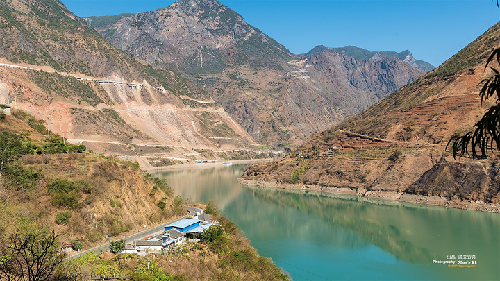 今天我这一路上所看到的金沙江,感觉仿佛就是在一幅山水画卷中穿越一般。湛蓝天空下,起伏山峦怀抱中碧玉般的江水美不胜收。