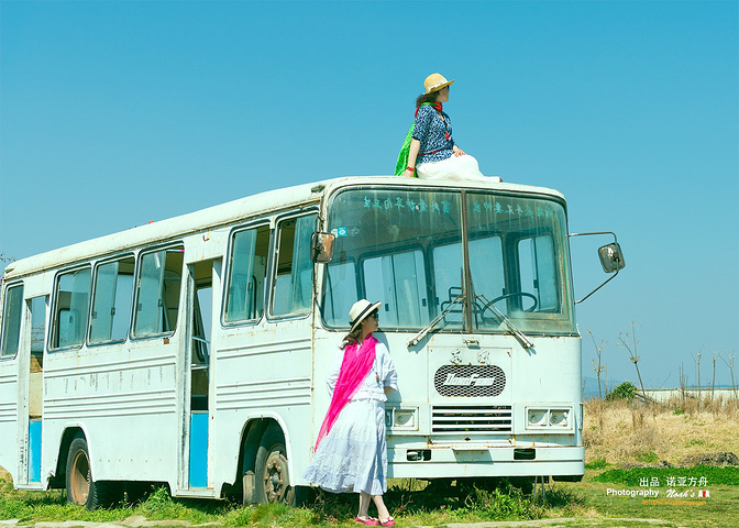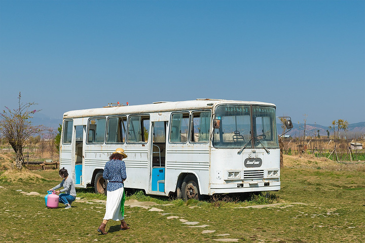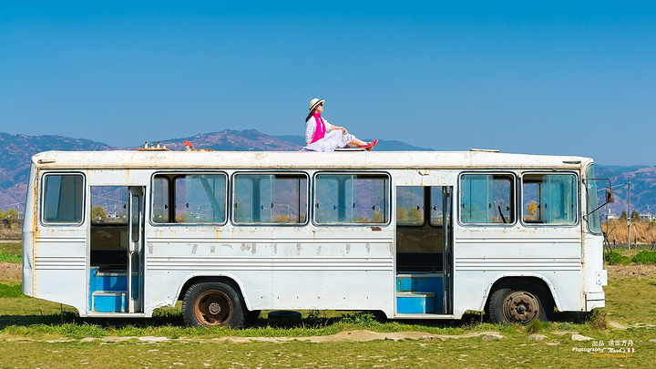 从桃源前往喜洲的路上,有很多当地人建的拍照点,比如花海等,当然也包括这个逐渐出名的白色巴士。具体地点在喜洲古镇北门的北边,往桃源的方向走,过了桥就能看见。此处可以拍摄巴士,以及田园风光。拍照点有人收费,每人(包括摄影师)30元。