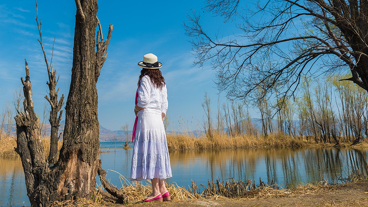 海舌公园在洱海西岸的喜洲镇金河村。苍山万花溪在这里入海,加上海水缓流和挤压的作用,形成了这块三面临水的长形沙洲,地方史籍记称“青莎洲”。洲长3里,由宽至窄深人洱海,如“舌头”,故名“海舌”。在地图上可以搜到,也可以在喜洲坐电动车过去,大约20元。公园里有很多地方可以拍摄海边的人像。