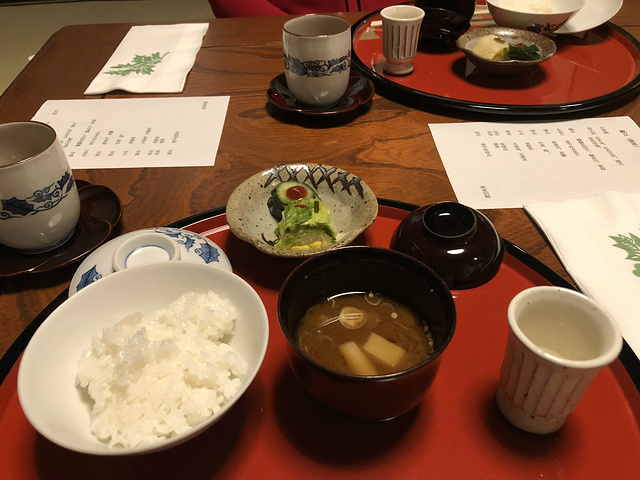 眼看已经过了6点,我们抓紧道别并匆匆赶往市营巴士站回到酒店取行李,去柊家别馆办理入住。更着急的是柊家别馆的怀石料理晚餐最迟是7点就餐,所以我们向酒店寻求帮助,希望他们沟通一下告知对方我们已经在前往的路上。最终很顺利,柊家别馆给我们的时间是7:15分要达到。