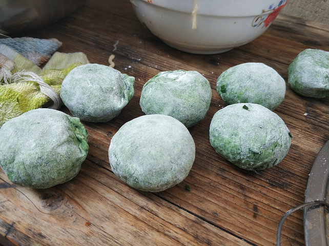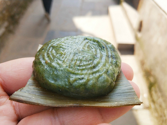 村子里,家家户户的门口,都有老人制作和售卖“清明果”,售价5元3个,这是一种用糯米制作的小点心,有白糖芝麻馅、萝卜丝馅和鲜笋艾叶馅,放在锅里蒸好,再放到艾叶上,非常有特色。