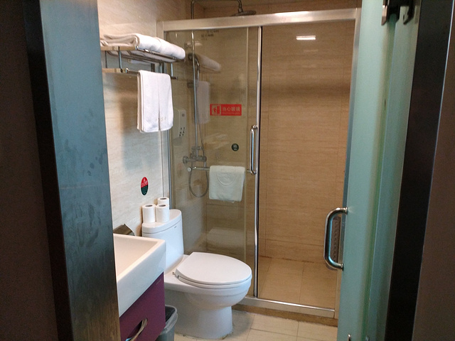 杭州的酒店我们也是选了好久,比较了好多快捷酒店和民宿还有民居,因为我们是3个大人带一个孩子,所以必须要有两间房间,而且还要离景区近,一开始想订民居,两居室可以自己做饭那种,后来发现还是远,而且也不算太便宜,于是又开始找西湖周边的,除了青年旅社的多人间,还有条件比较差的,基本都是300左右一晚上,我妈要求也比较多,房间不能太小,要有窗,窗户不能对着走廊,要离景点近,要有早餐。。。。我也是很无奈啊,结果正好发现了格林豪泰雷峰塔店在飞猪上做促销,特价大床房129一晚上,有窗,还是街景,马路对面就是景区,就是房间稍微小一点,大约15平,但是白天基本不在酒店也无所谓了,早餐就在酒店后边的巷子里,自己花钱买就行了。但是特价大床房只有一间了,又注册了一个格林豪泰会员想再定一间,结果发现没有了,只剩一间了貌似,于是又定了一间特价双标间,169一晚上,正好我们三口睡双标间,把俩床拼一起孩子躺中间,拼上之后2.4m宽,超级舒服,完美!