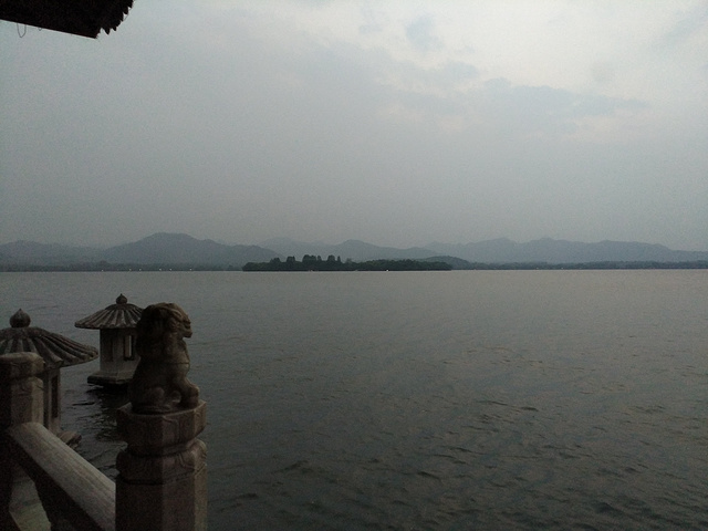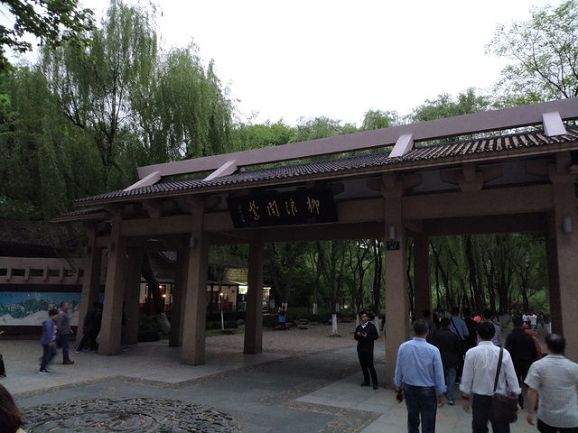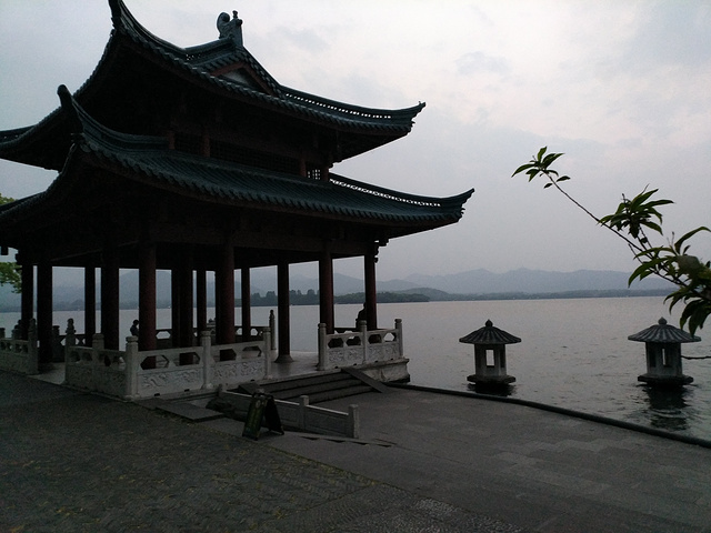 吃完饭感觉有点吃多了,就打算溜达回去,于是又推着遛娃神器往回走,走到柳浪闻莺已经6点多了,正好是傍晚,于是决定去西湖边上逛一逛。