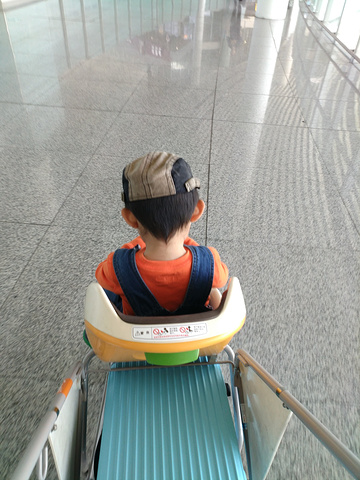 机场里有免费婴儿车可以坐,0-36个月,我们还有一个月就不能坐啦!