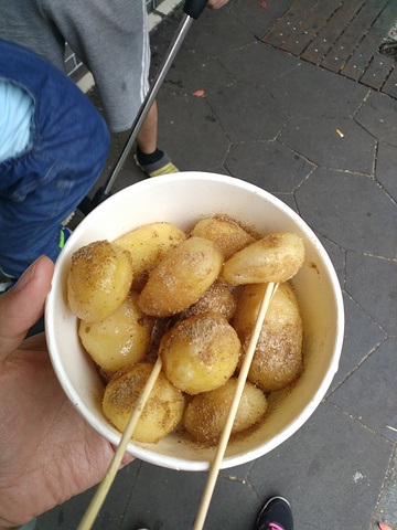 摆渡的姐姐还给我们讲了三潭印月还有小瀛洲岛的一些传说,挺有意思的,据说每年中秋节晚上三潭印月会开灯,倒映天上的月亮一共是32个,还有这三个柱子每个7米,水下5米,水上2米,传说是太上老君的香炉扣下来镇压妖精的,所以照相的时候不要把人照进去。小瀛洲岛传说是苏东坡挖西湖的时候把西湖里边的淤泥挖出来没地方放,堆积出来的岛,从空中俯瞰是一个田字形。这边属于外西湖,看完三潭印月就往回走,穿过苏堤的第二座桥锁澜桥到了内西湖,内西湖的那边就是杨公堤,过了杨公堤可以看到龙井村,是龙井茶的原产地,当地都是茶农,喜欢喝龙井的朋友可以直接去茶农家里买,分几茬,第一茬一般是明前茶,即清明之前的茶叶,要2000以上一斤,清明之后谷雨之前的,是雨前茶,第二茬大约在500左右一斤,后面的3.4.5茬就更差一些。这些都是当地会买的人的价格,一般看是游客就会贵。然后绕到荷花观赏地,当然这个季节是没有荷花的,然后回程,回程可以从花港观鱼下,也可以从上船的码头下,我们从花港观鱼下船,买了一份神龙小土豆,一份椰奶,进花港观鱼,里边旅行团太多,于是就走了一点点就出来了。