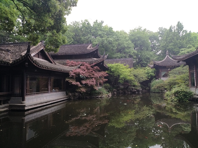 参观之后不到4点半,本来想去找知味观味庄的,又觉得太早,于是从花港观鱼西门进去玩一会儿。路过爆胎的地方,师傅还在那里,孩子指着右前轮就说,瘪啦,瘪啦,我那个尴尬啊。。。走进花港观鱼一直往里走,半截有个魏庐,环境真是不错啊。在这里歇了一会儿,拍拍照,再往里边走有水有鱼,孩子特别开心又能喂鱼了。
