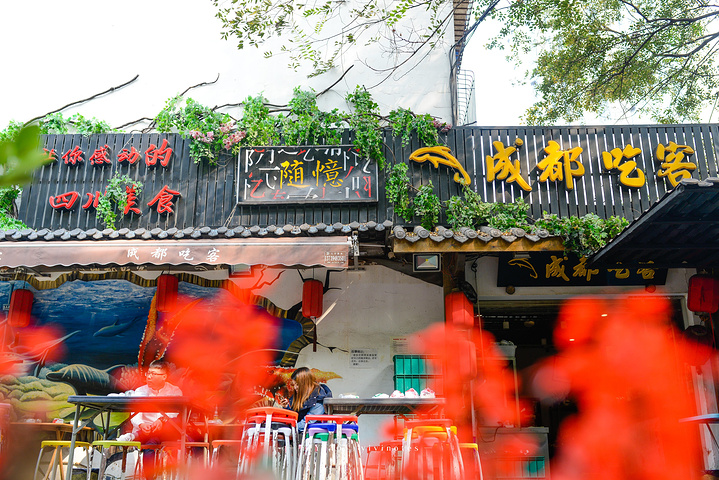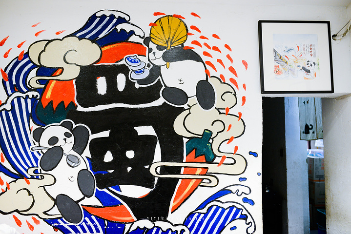 成都吃客的墙面上也有着魁星楼街的涂鸦特色,墙上的辣椒与喝盖碗茶的小熊猫也是萌萌哒。