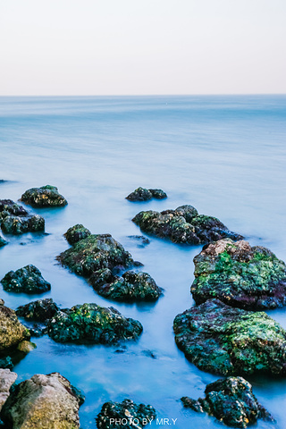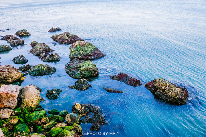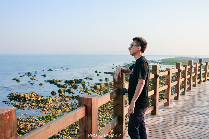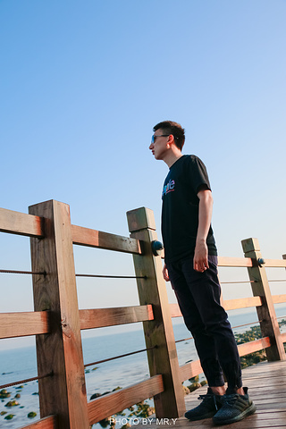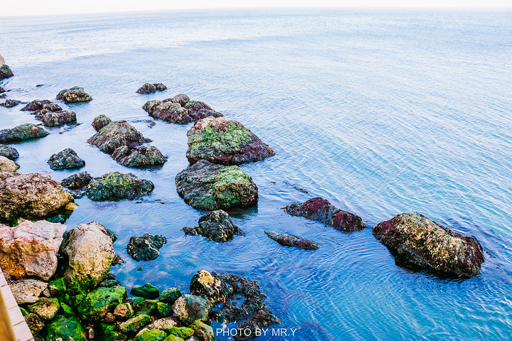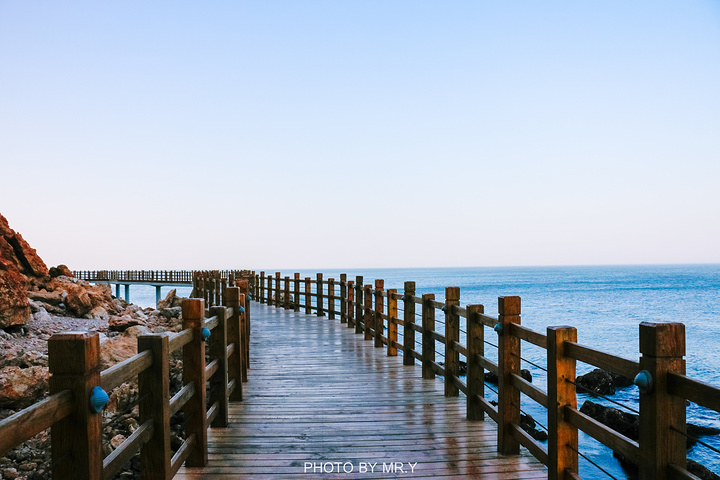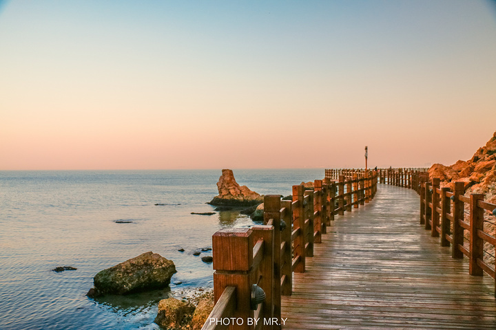 两边的海浪礁石可以拍长曝光,可惜木栈道有人经过就会晃,拍的糊成一片