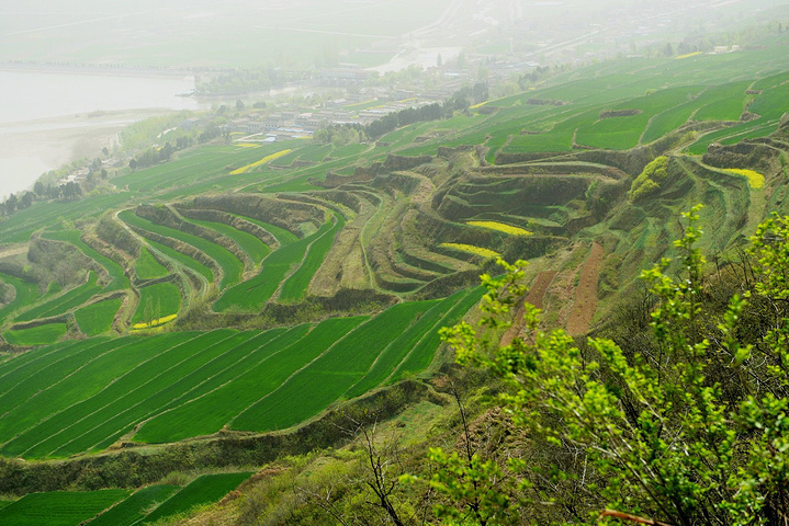 在油菜花的东边,是蟠龙塬的东沿,王家崖水库就在塬下,看着水库边车刘、五星、刘家坡等村落,美丽的风景里,有记忆中的高中同学,还有父辈的亲友,层层梯田的绿色麦苗,黄色油菜花,展示着这个以农业为生存根本的塬地风情。