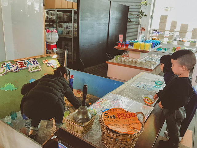 大厅里基本都是卖玻璃制品的,一直往里走发现有个小摊位,可以玩游戏哈哈哈~