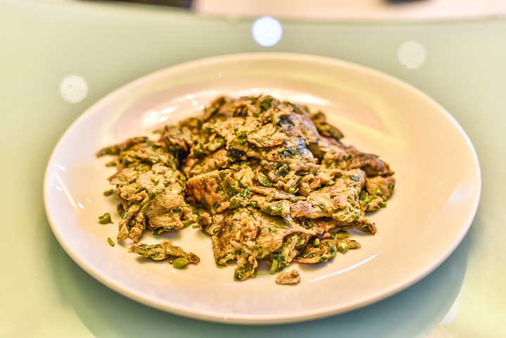 香椿煎鸡蛋,一般在农村均可吃到。徽州人民也很喜欢吃这道菜。