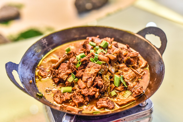 这个菜的名字我太不清楚,不过相传这是北方的特产。这个是与严子陵从北方做官回到江南隐居的时候带来的食物。不过,还挺不错的。下面的是面条,上面的则是酱肉。口味非常不错,不仅仅是牯牛降的特色,更是池州地区人民喜欢的一道美味。
