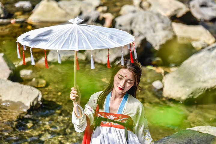 在这样如诗如画的、仙境般的清新之地,穿上一套汉服来此,真的还以为是跨越了时间的顺序、岁月的轮回了呢。仿佛来到了鼎盛中华的大唐盛世时期那样,更像是在梦中一样显得如此的温馨而雅致。