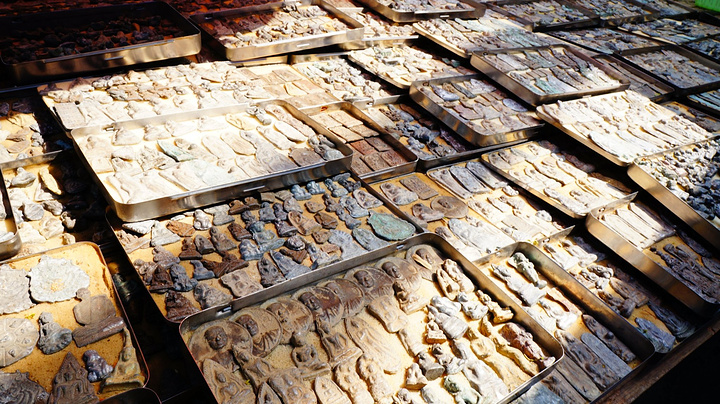 第二天白天有一整天的时间游览曼谷,我们早上退了房间,把行李寄存在了酒店,寄存费好像是60B。我们徒步去了一个卖佛牌的市场,其实就是一条街边的人行道上摆满了摊,非常长的一条,本地人看起来居多。