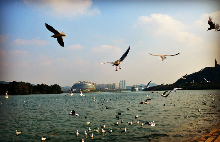 三江半岛位于城市中心,在城区内打车 10几块钱就能够到达。我们一般选择在停车场的位置下车,因为那边的风景很美。马鞭草开了花,引来了好多的蝴蝶,翩翩起舞,充满了让人愉悦的心情,这里的风景完全适合于爱拍照一族。不论是风景照,还是自拍都能自成一幅美画。