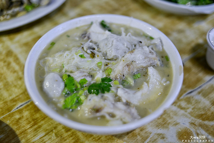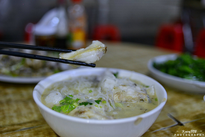 鱼煮粉,也是采用现杀鱼肉,但没有鱼头,煎的时间不长,汤水不及谢记的奶白,但依然很美味。我发现,无论是腌粉还是鱼煮粉,他们全部都采用梅州当地的湿粉来制作,湿粉能更好地吸收汤里的精华,吃起来更香。