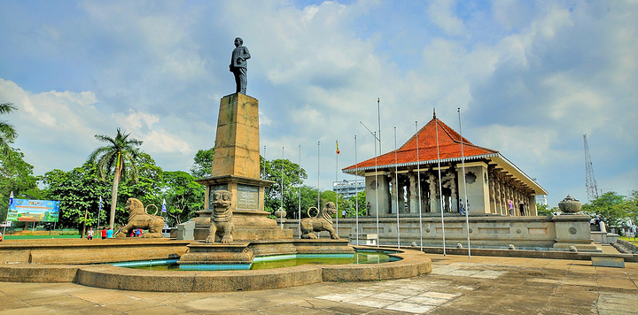 【独立广场和独立纪念堂】:科伦坡独立广场,是一座为纪念斯里兰卡1948年脱离英国殖民统治而兴建的纪念厅。这栋庞大的石头建筑基于康提礼堂而建,周围还有象征僧伽罗人的狮子雕像。