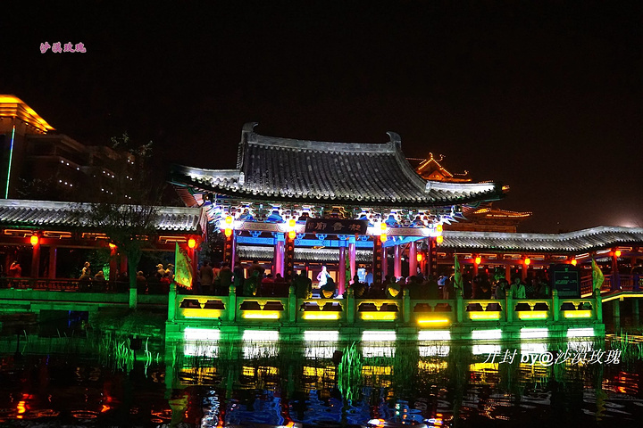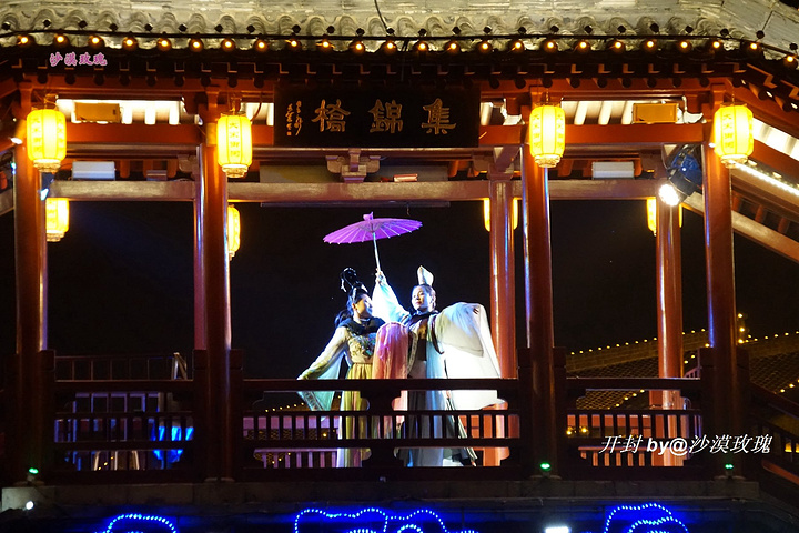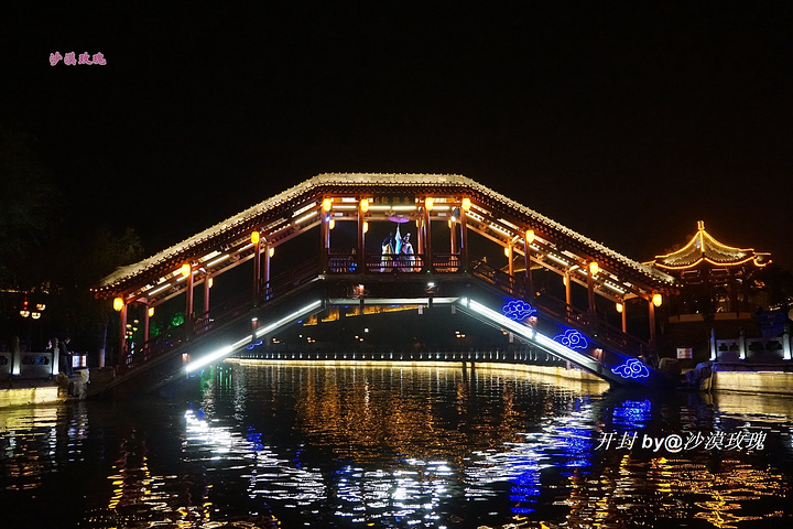 两岸仿古建筑用灯光演绎,与开封城浓厚的历史文化底蕴相结合,夜晚美轮美奂,画舫沿河而下,两岸歌舞升平。千年前古都的繁华盛景,也不过如此吧。